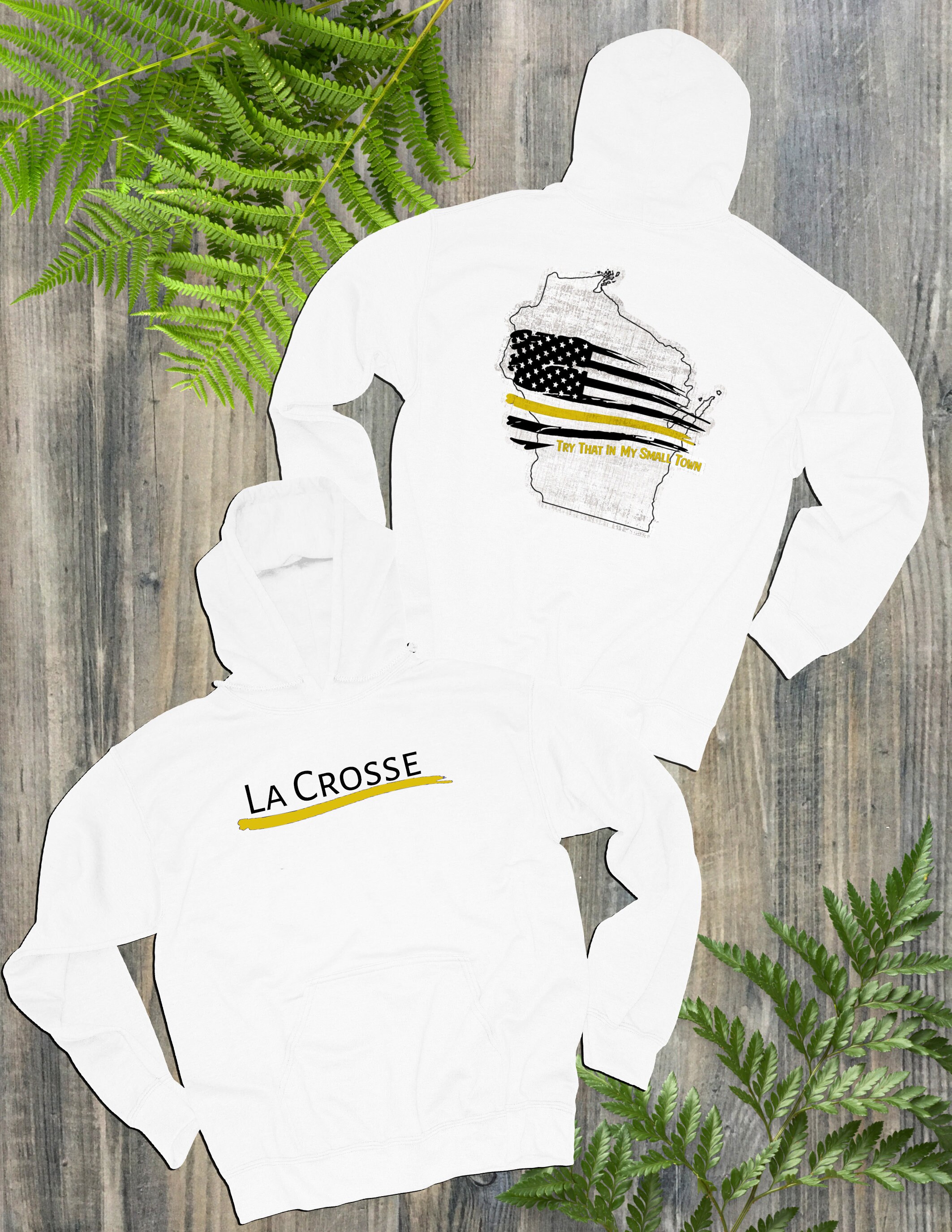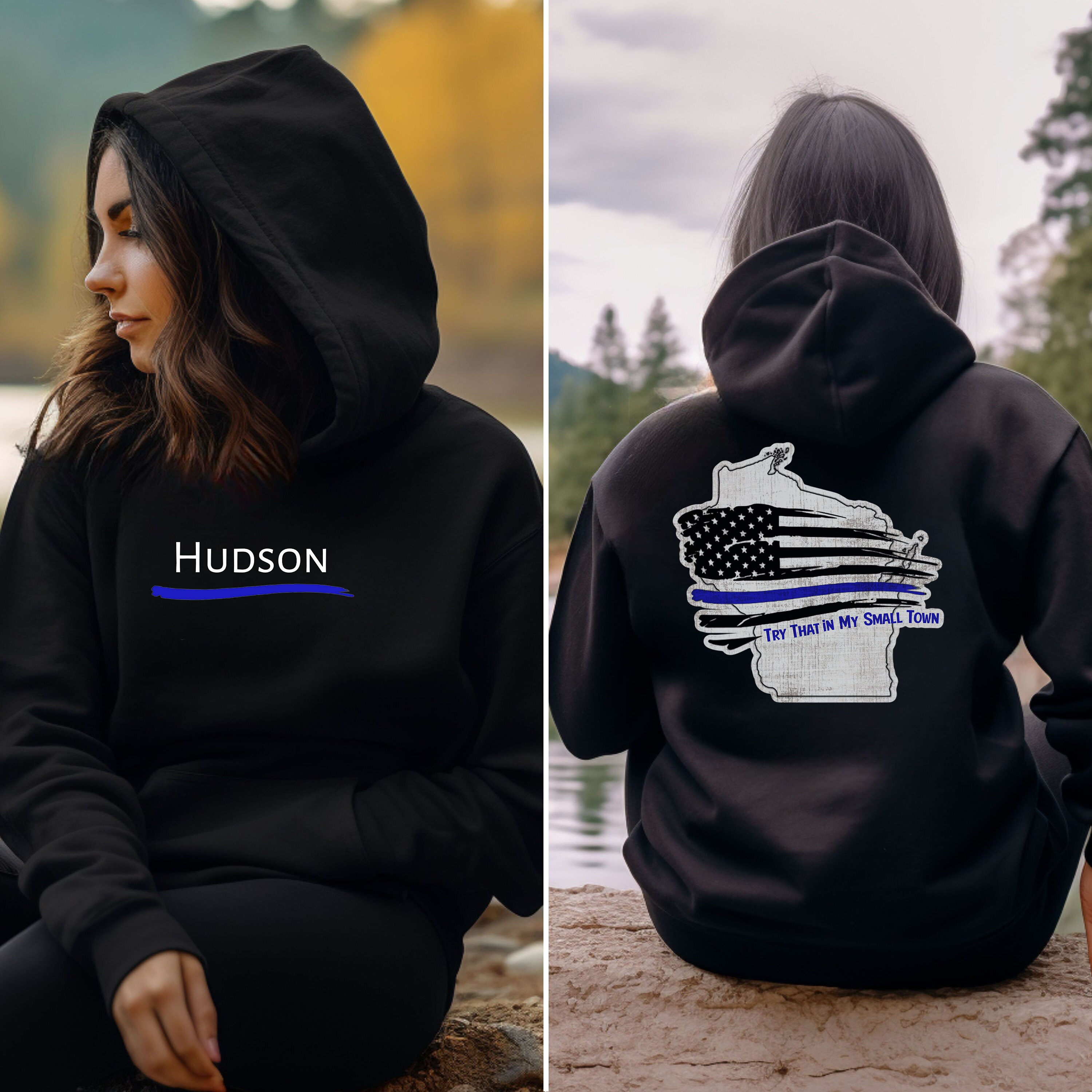 Those that protect & serve need to feel our support now more than ever. Show them some love with a thin line hoodie that is customized with the name of your "small town" in the great state of Wisconsin.